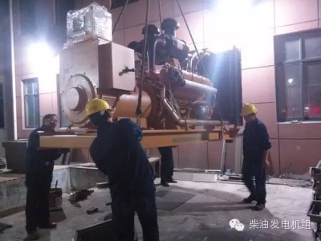 可用悬吊机车小心提升柴油发电机组或者用铲车在机组底座上进行小心的推或拉。如果推,则不要直接用铲叉推机架,一定要在叉与基座之间放置木头或其它表面平整的物品以防止碰伤机架和分散重量。这种操作应注意悬吊钢索的承重能力及悬吊钢索的角度应尽可能垂直,并且要小心保持机组的平衡,机组的吊装受力位置应尽可能靠近机组的重心,而不是机组外形尺寸的中心位置,以避免机组在空中摇摆甚至失去平衡掉落地面。而铲车的叉臂承载力应大于机组重量的120~130%。